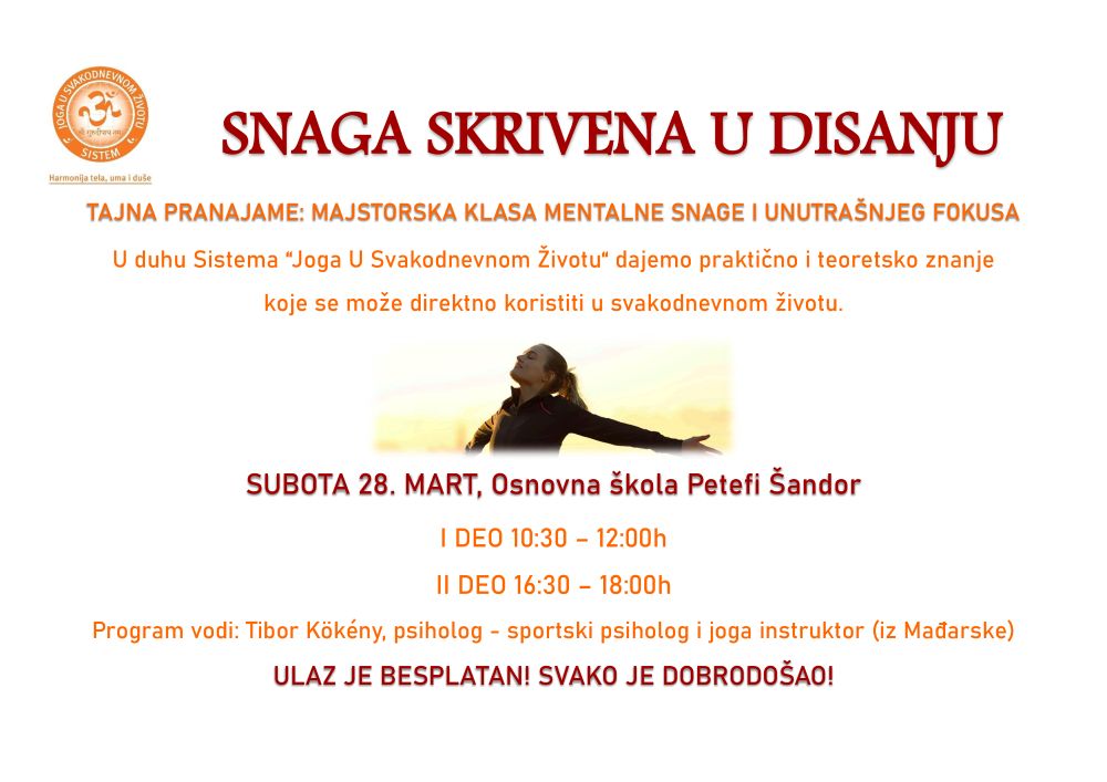 Program vodi Tibor Kökény, psiholog - sportski psiholog i joga instruktor (iz Mađarske)