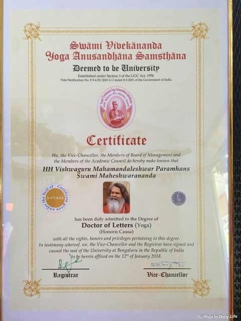 Višvaguruđiju, Autoru Sistema "Joga u svakodnevnom životu" je dodeljeno zvanje Doctors of Letters (Doctors of Letters - D.Litt., latinski Litterarum) od strane S-VYASA Univerziteta iz Bangalorea - Indija, kao rezultat njegovog izuzetnog rada na polju Joge, kroz Sistem “Joga u svakodnevnom životu”.