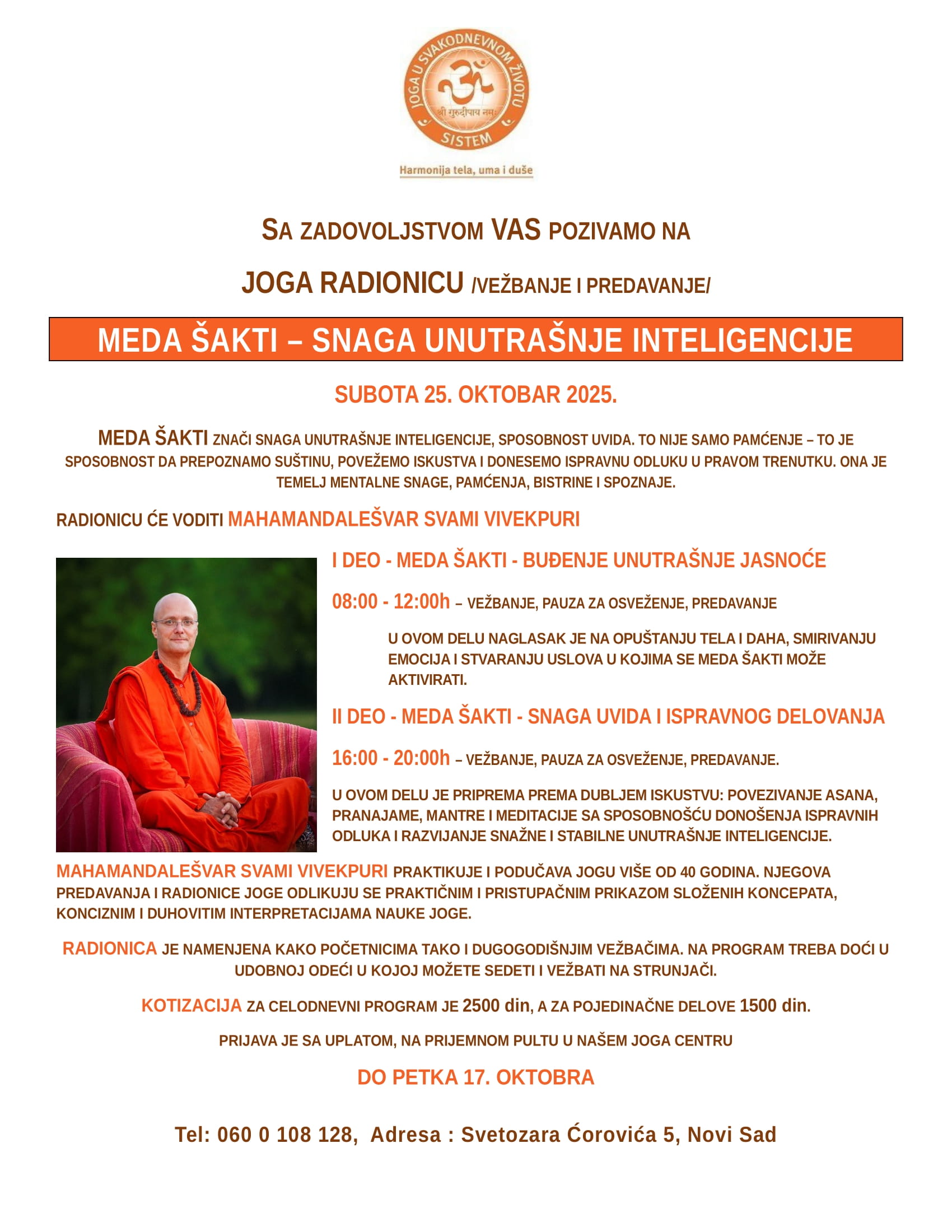JOGA RADIONICA - MEDA ŠAKTI - SNAGA UNUTRAŠNJE INTELIGENCIJE