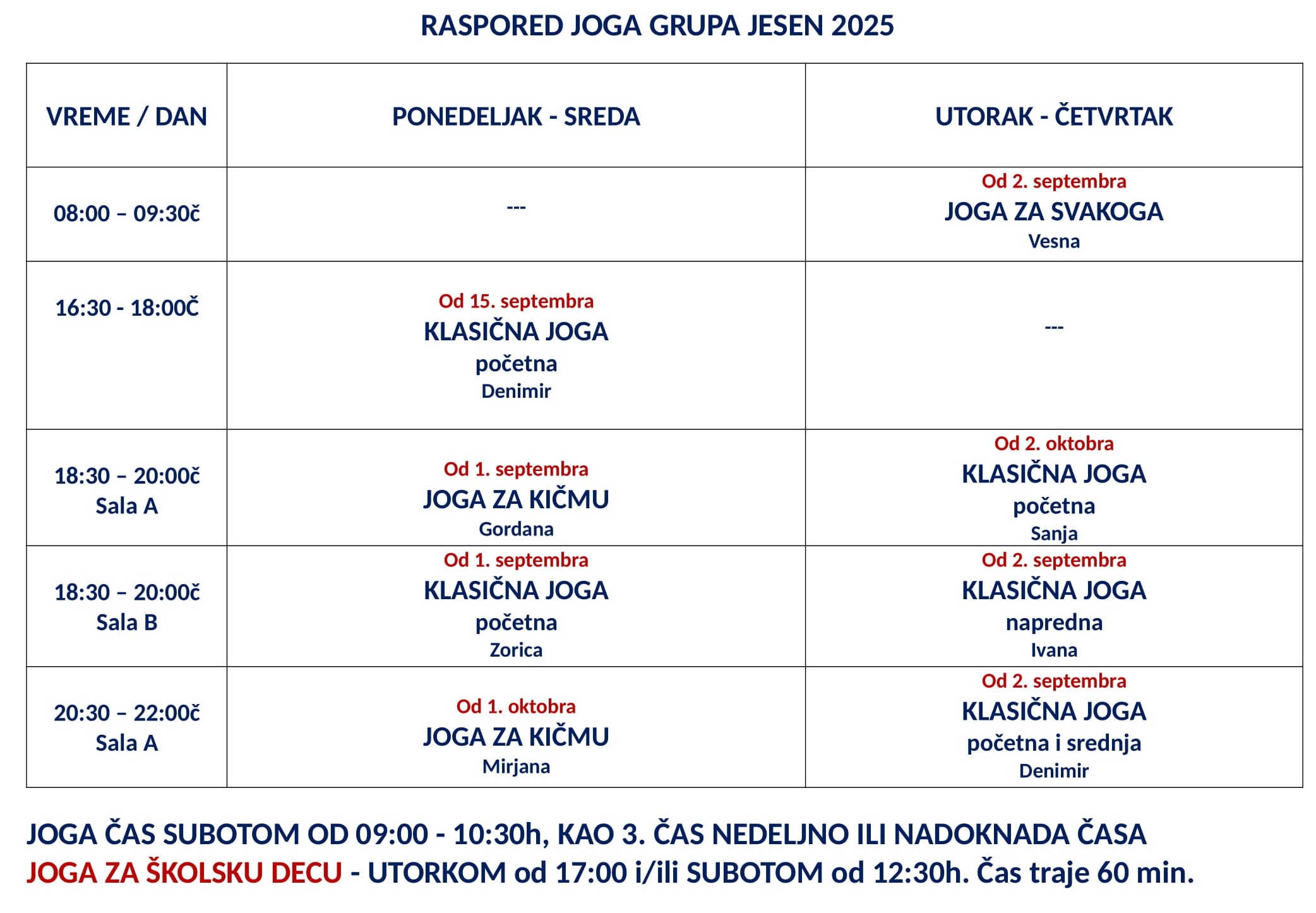 Od ponedeljka 1. septembra počinjemo sa JOGA ČASOVIMA u našem joga centru.
